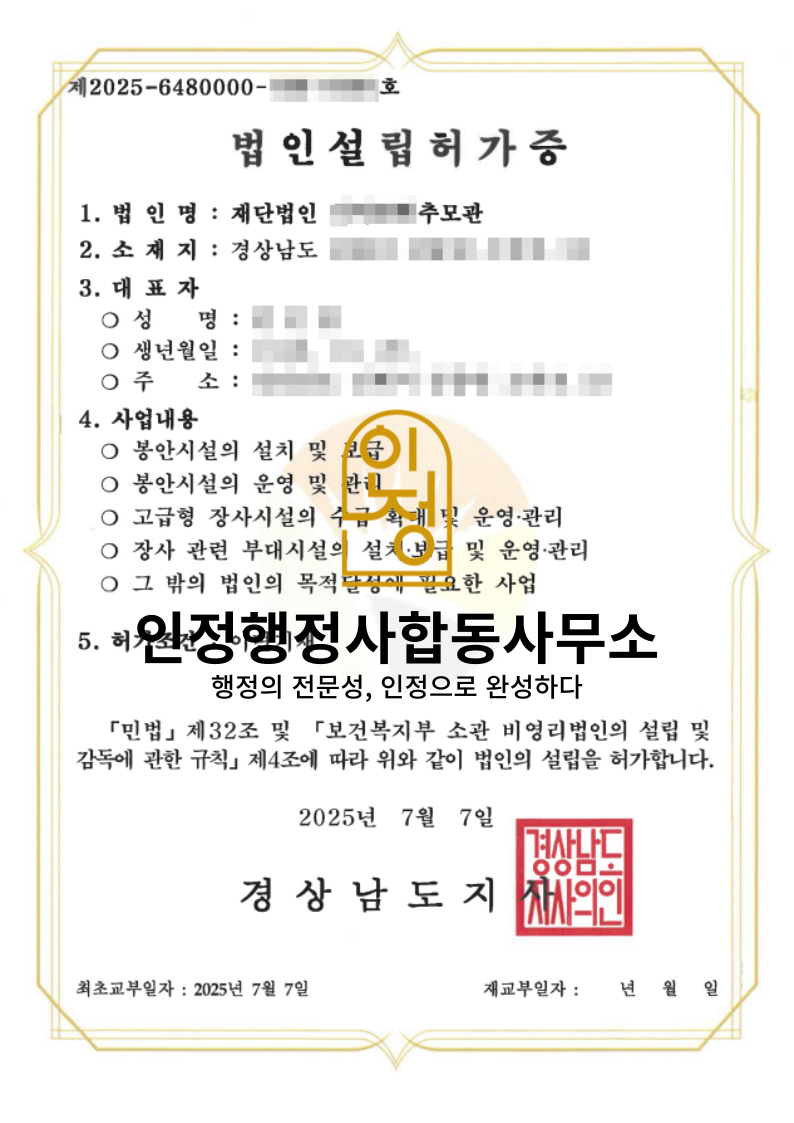 25년 7월_장사재단법인 설립 대행 완료(봉안시설)