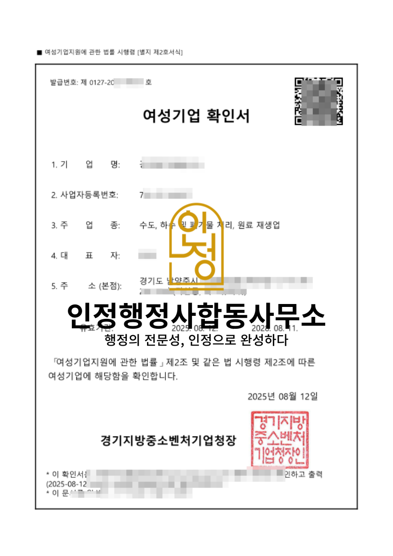 #여성기업확인서 #여성기업확인서발급 #여성기업확인서요건 #여성기업확인서절차 #여성기업확인서대행 #여성기업확인서가점 #전문행정사