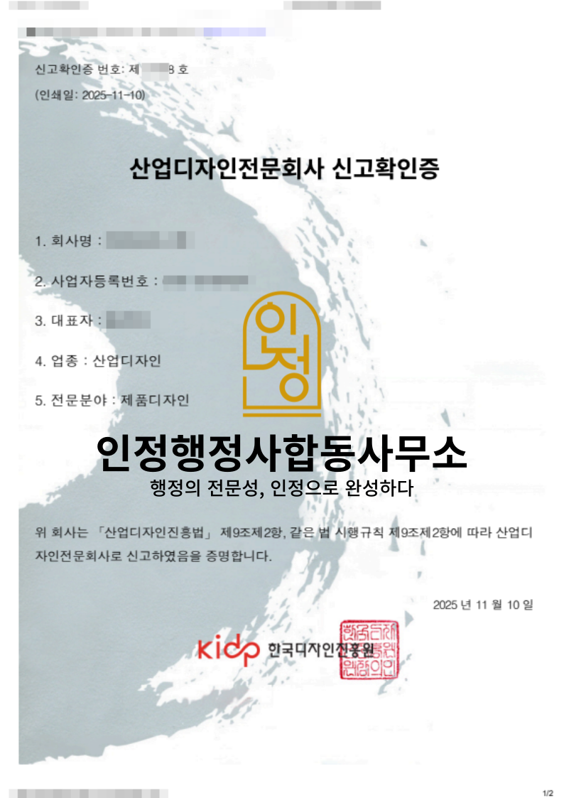 25년 11월_산업디자인전문회사 신고 대행 완료