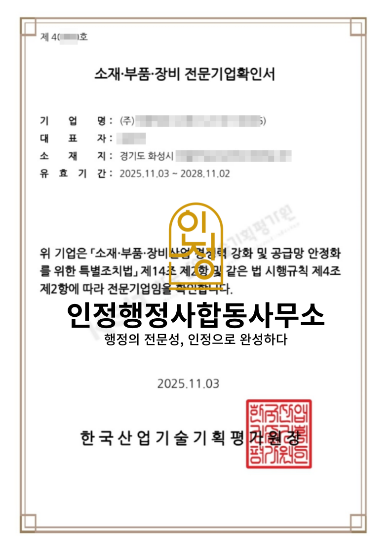 25년 11월_소재부품장비전문기업확인서 발급 대행 완료