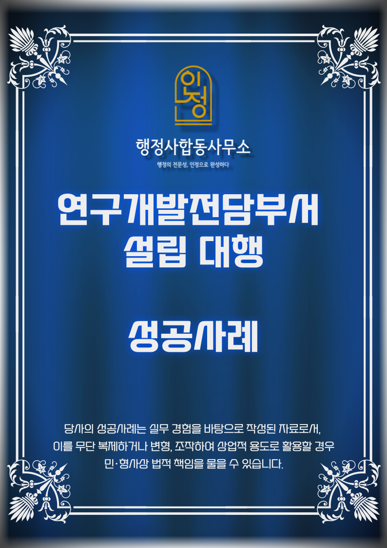 인정행정사합동사무소는 업종 특성에 맞춘 R&D 체계 구축으로 안정적인 전담부서 설립을 지원합니다.