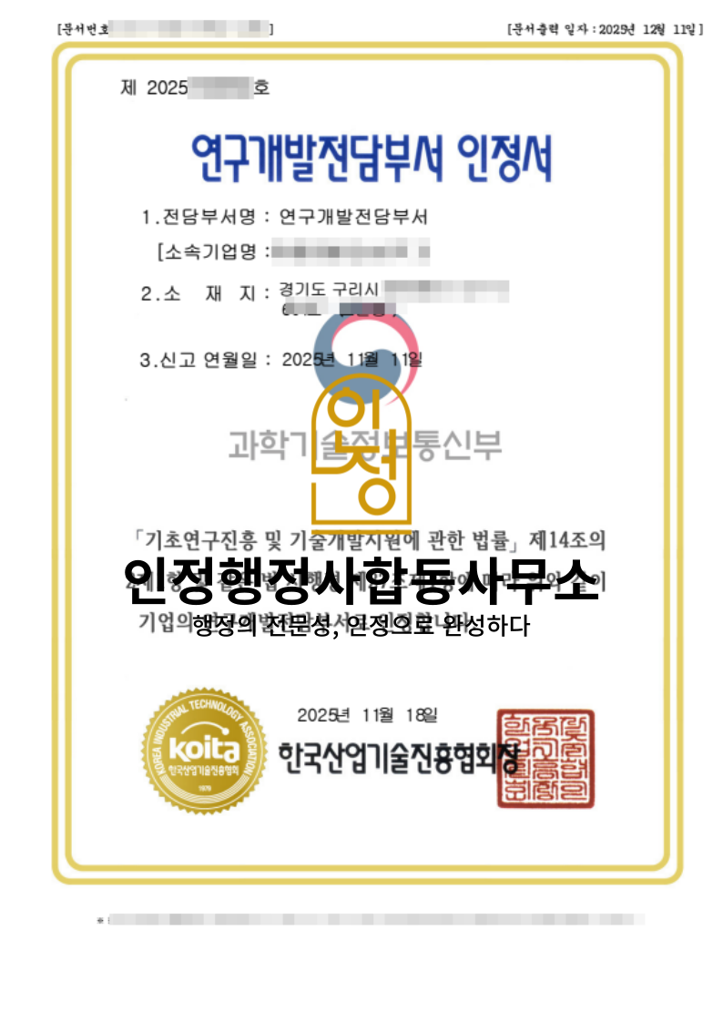 #연구개발전담부서 #라벨제작업체 #스티커제조 #KOITA #연구전담부서설립 #R&D기업 #세액공제 #기술개발 #인정행정사