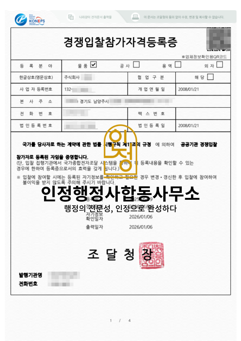 인정행정사합동사무소는 초기 등록부터 입찰 참여까지 안정적으로 지원합니다.